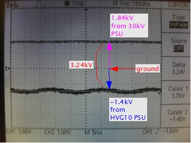 The slight AC ripple on the lower line from the HVG10 PSU is noise