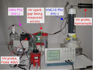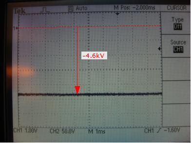HV probe connected to the oscilloscope's channel 1 to measure the positive