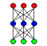 As shown in the diagram above, this software offers a simple, 2 layer neural network, which is fully connected. The two layers are the input layer, consisting of input units, and the output layer, consisting of output units. The hidden units don't count as a layer. The lines are all assigned values called weights. There are other components as well but those are not visible to users of the library, though you can see them if you look at the source code.