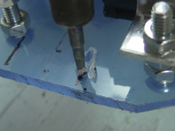 I next drilled holes in the drive plates for bolting the batteries on. I then drilled matching holes in the battery's plates.